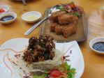 After the meal, we each had a citrus jelly-filled young coconut. We ate the jelly and drank the refreshing coconut water, and scrapped and spooned out the white coconut flesh. This balanced out all the rich fried food from the meal.