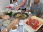 My sister's electric hot pot was a large stainless steel vessel, with the soup stock boiled in a deep bowl. While the hot pot simmered, a variety of ingredients like thinly sliced beef, chicken and pork, Chinese white cabbage, shiitake mushrooms, tofu, fish and prawns, were all cooked at the table.